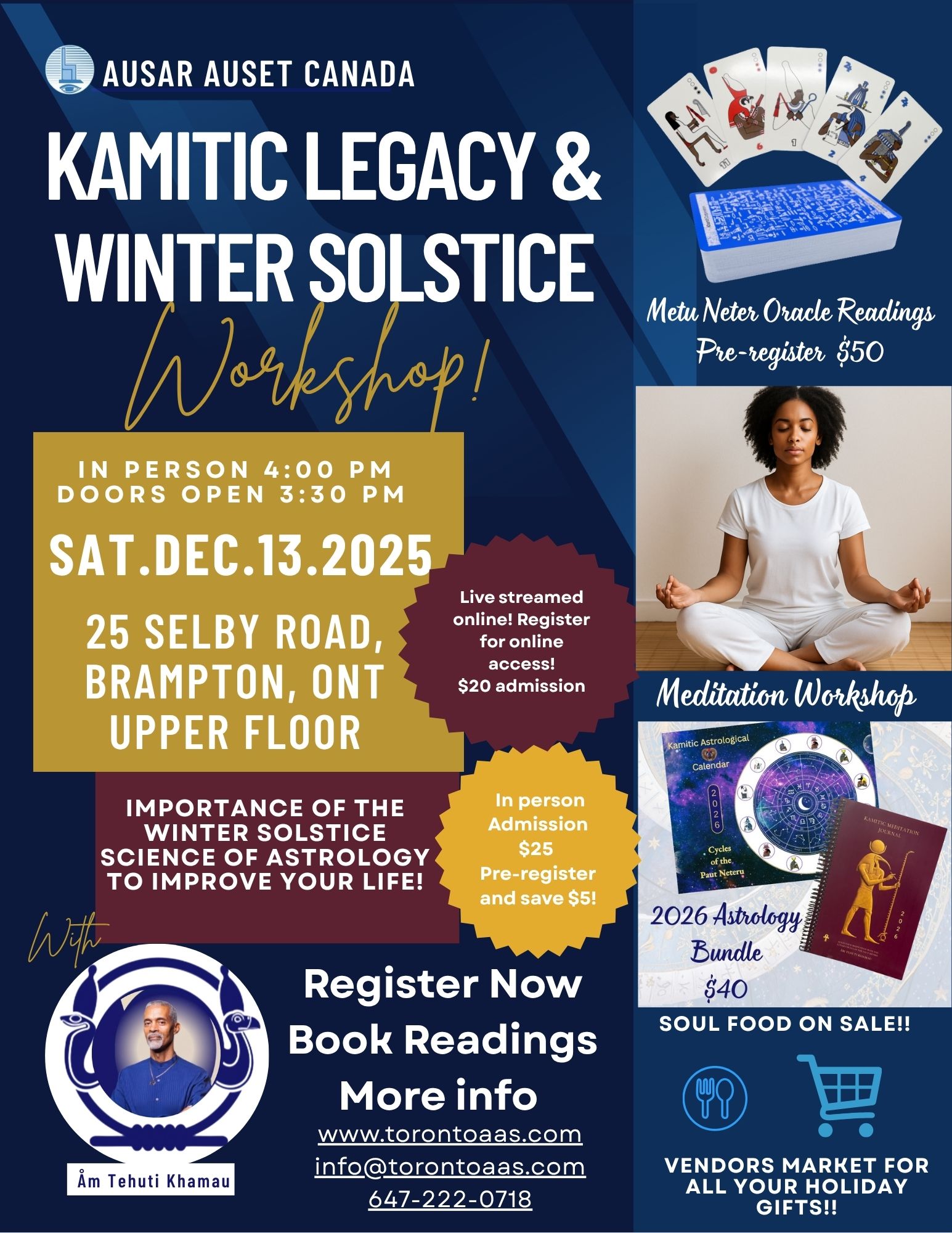 Note: Spiritual Reading will take place at in Brampton(Saturday) and Scarborough(Sunday) and can be virtual if requested.